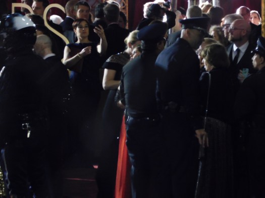 After standing on the sidewalk for hours, and being a little disappointed cause I arrived after the red carpet. The show finally ended, and little by little it started to arrive a lot of luxurious cars to pick up each guest before they got out the theater. All was a sequence of numbers, each guest had a number corresponding to its car. That process took many hours, I could say that many were waiting for hours to be called by their number. I was so shocked with the majority of women couldn’t deal with the pain on their feet because of their high hills shoes, what a torture. Lol Hilarious.